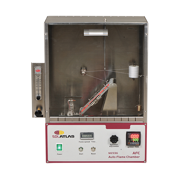 The 45° Automatic Flammability Chamber automatically times the flame spread in 0.1 second increments from ignition.