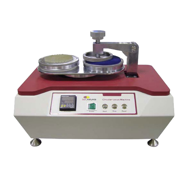 Using an active friction system, fabric is rubbed against a nylon brush and abrasive or an abrasive only under controlled conditions. Results of the test are achieved in minutes. The relative motion of the locus specimen grip and the abrasive platform is a circle with a relative speed of 60+/-1 r/min. The grip offers pressure to the specimen which is adjustable with a tolerance of +/-1%.