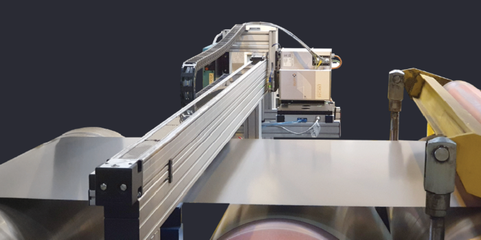 The ERX145 Inline is installed behind the water quench where the product is still hot. The built-in pyrometer measures the actual temperature of the hot strip and, along with ESWin QC software, recalculates the color to room temperature so that the inline measurement shows an excellent correlation to the laboratory system. If necessary, the GlossFlash 6060 can be mounted next to it to evaluate color and gloss across the entire length and width of the coil. If the color of a strip is important on both sides, a second ERX145 Inline can be mounted below the roll, too.