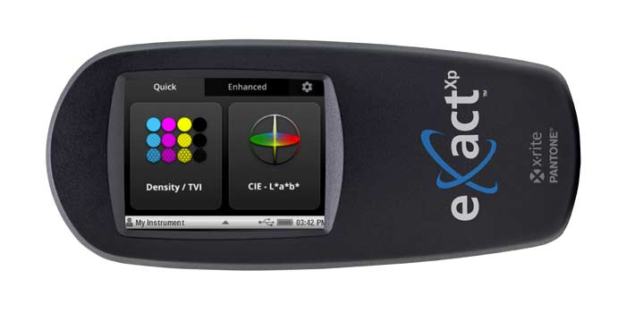 The eXact Xp is designed to ensure accurate printing of both CMYK and spot colors as well as leveraging industry standards for process control. It also boasts unique features for ink labs and quality control labs to provide enhanced functionality of quality control features, store sample measurements for data tracking, and allow for multiple user profiles on one device.