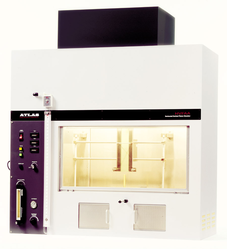 The Atlas HVFAA Horizontal Vertical Flame Chamber provides the most accurate means for determining the flammability of aircraft cabin and cargo compartment materials, liners and waste stowage compartment materials, and electric wire. The large volume chamber prevents oxygen depletion during tests. Three digital timers with remote control make specimen event timing precise and convenient. To ensure accurate and repeatable tests, an optional burner flame temperature verification kit is available. The HVFAA is the optimal instrument for conducting repeatable FAA flammability tests and is used in the FAA’s training facility.