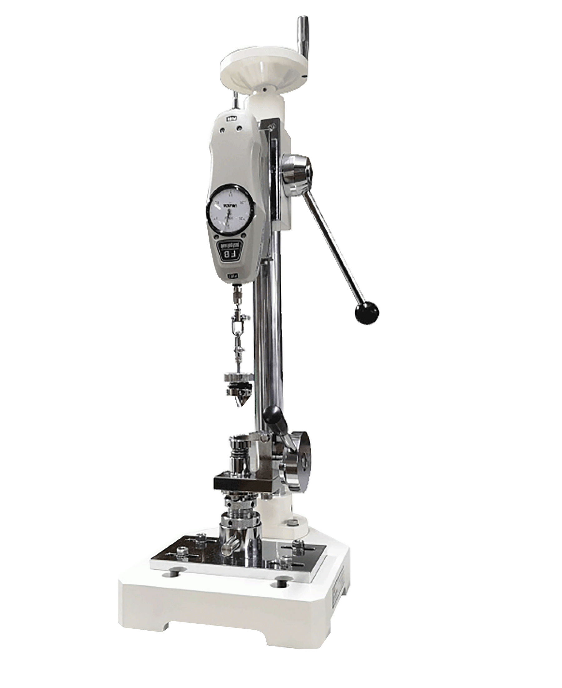 The SafQ Snap Tester is used to determine the holding or breaking strength of prong-ring attached snap fasteners onto garments. The instrument consists of an Upper Snap Clamp, a Lower Fabric Clamp and Force Gauge mounted on a stand. The snap component is gripped by the Upper Snap Clamp and the garment is fixed to the Lower Fabric Clamp. By turning the Top Flywheel, the operator can apply a specific force and the holding force or the breaking strength can be recorded.