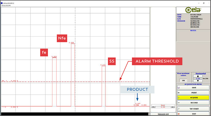 The AUTO-QC function generates automatic stimuli corresponding to the manual metal samples transits, verifying the correct activation of the alarm and of the ejector. The mix of manual and automatic test operations can be programmed in a wide ratio range (from full manual up to one manual to full automatic), depending on the User Quality procedures.