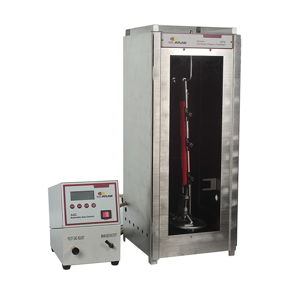 The Vertical Flammability Chamber, designed for American Standards, measures the vertical flame spread for children’s sleepwear, fabrics, other textile materials or resilient filling materials used in upholstered furniture.